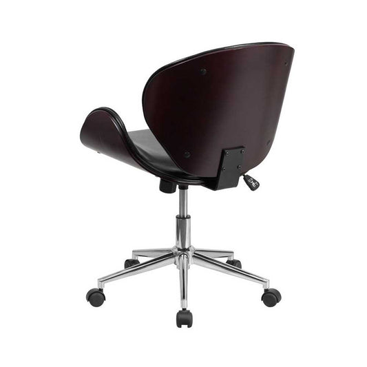 Mid-Back Mahogany Wood Conference Office Chair in Black LeatherSoft