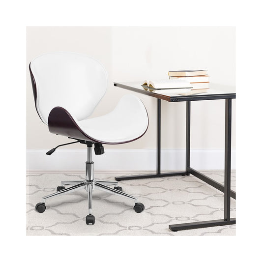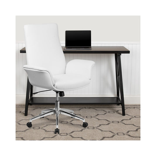 Mid-Back White LeatherSoft Executive Swivel Office Chair with Flared Arms