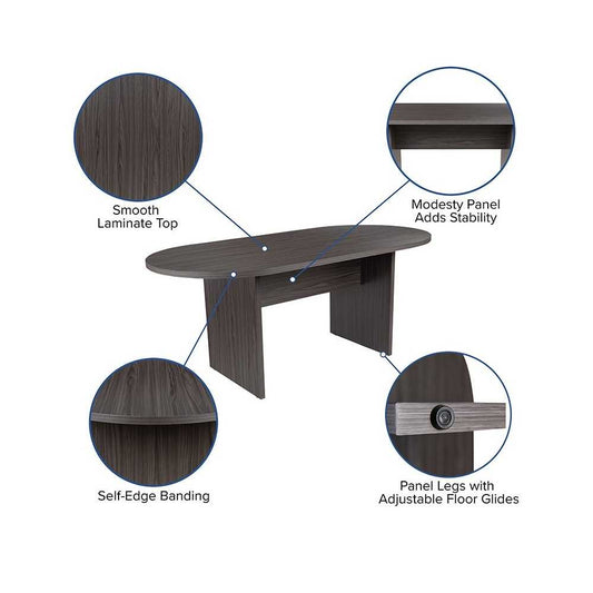 6 Foot (72 inch) Oval Conference Table in Rustic Gray