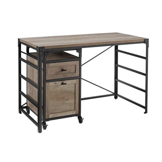 48" Angle Iron Desk with Filing Cabinet Cabinet - Gray Wash