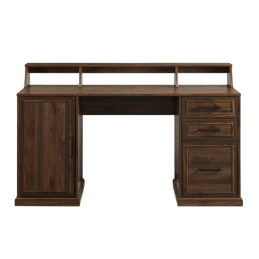 Gavin 58" 3 Drawer Computer Desk with Hutch - Dark Walnut