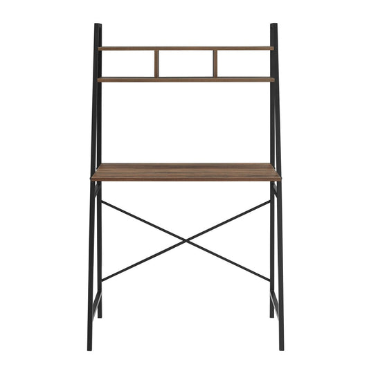 Urban Industrial Slat Back Metal-X Writing Desk - Dark Walnut