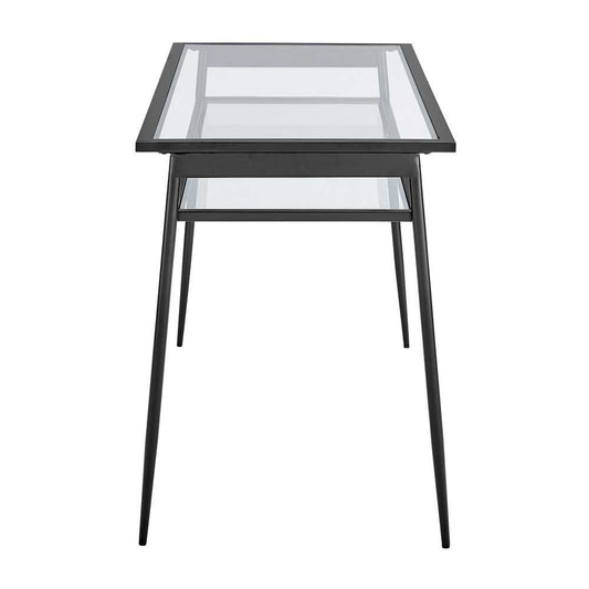Rayna 48" Two Tier Glass and Metal Desk - Black