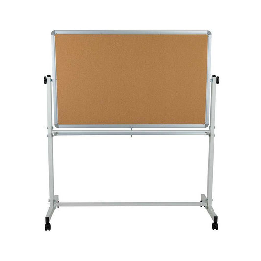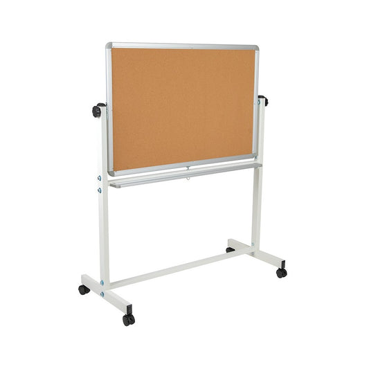 45.25"W x 54.75"H Reversible Mobile Cork Bulletin Board and White Board with Pen Tray