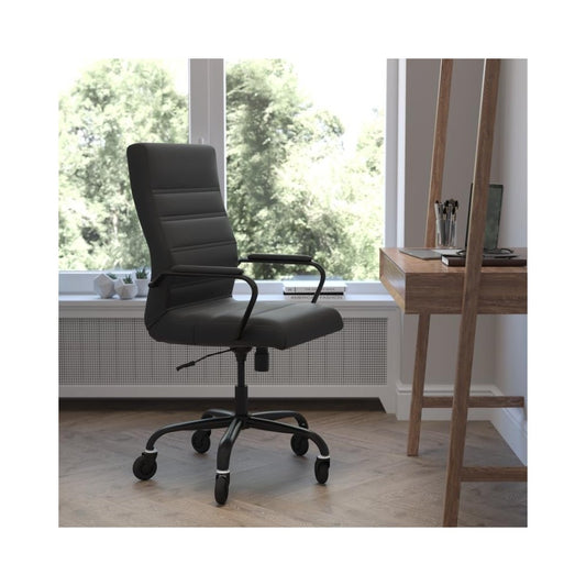 High Back Black LeatherSoft Executive Swivel Office Chair with Black Frame