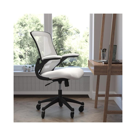 Kelista Mid-Back Black Mesh Swivel Ergonomic Task Office Chair with White Frame