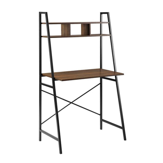 Mini Arlo 56" Tall Compact Industrial Ladder Desk with Storage - Dark Walnut