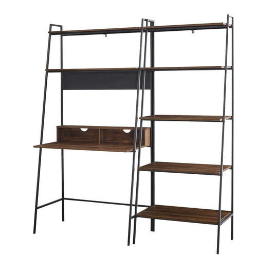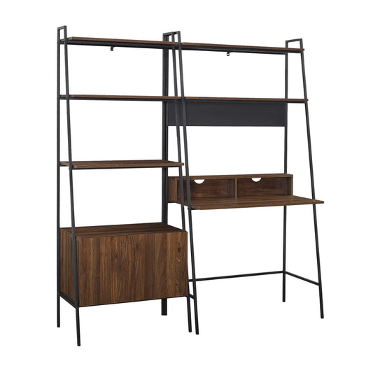 2 Piece Metal & Wood Ladder Desk and Storage Shelf - Dark Walnut
