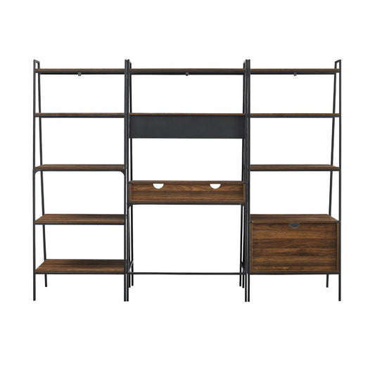 3 Piece Metal & Wood Ladder Desk, Ladder Shelf and Storage Shelf - Dark Walnut