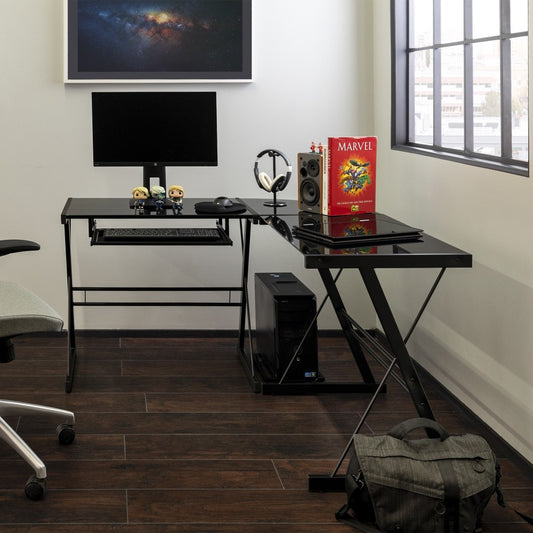 51" Modern Metal Glass Corner Computer Desk - Smoke