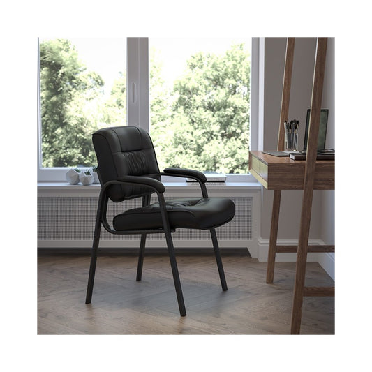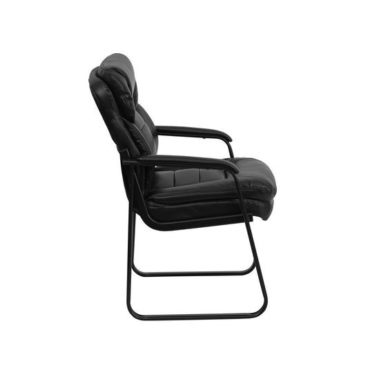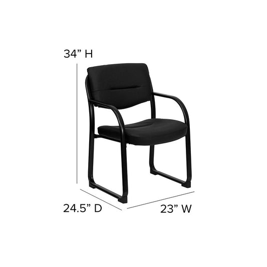 Black LeatherSoft Executive Side Reception Chair with Sled Base