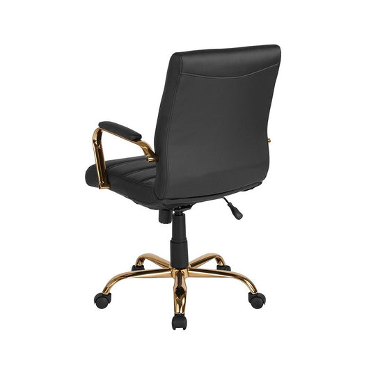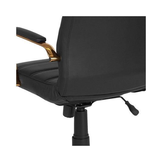 Mid-Back Black LeatherSoft Executive Swivel Office Chair with Gold Frame and Arms
