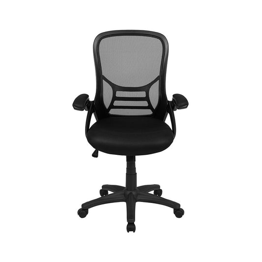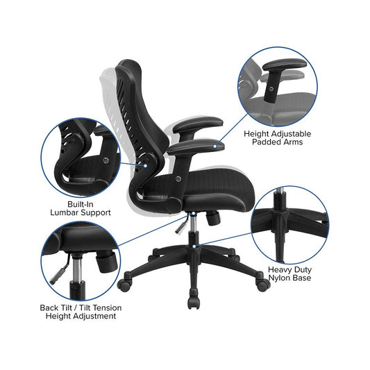 High Back Black Mesh Ergonomic Swivel Office Chair with Black Frame and Flip-up Arms