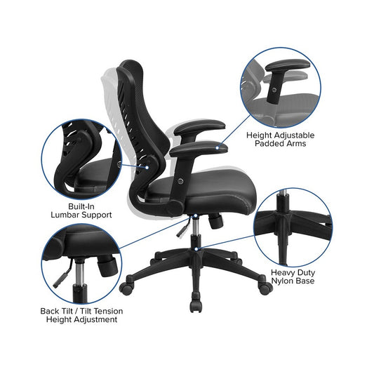 High Back Designer Black Mesh Executive Swivel Ergonomic Office Chair with LeatherSoft Seat and Adjustable Arms