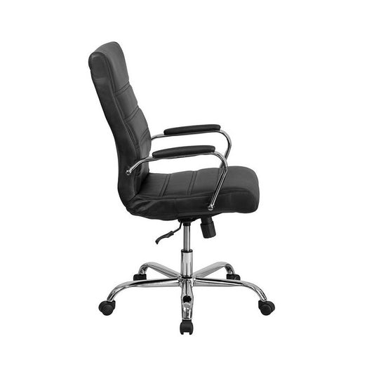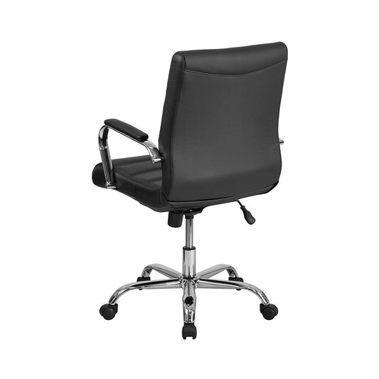 Mid-Back Black LeatherSoft Executive Swivel Office Chair with Chrome Base and Arms