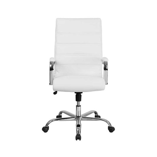 High Back Office Chair | White LeatherSoft Office Chair with Wheels and Arms