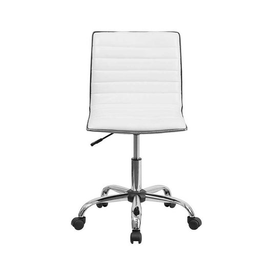 Low Back Designer Armless White Ribbed Swivel Task Office Chair