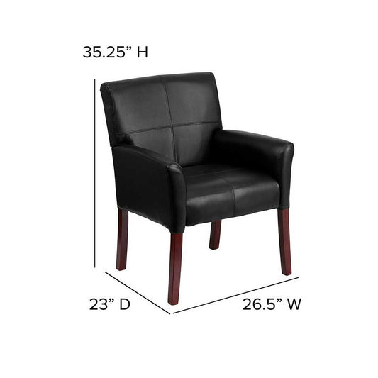 Black LeatherSoft Executive Side Reception Chair with Mahogany Legs