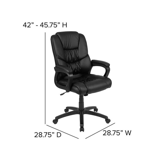 Flash Fundamentals Mid-Back Black LeatherSoft-Padded Task Office Chair with Arms, BIFMA Certified