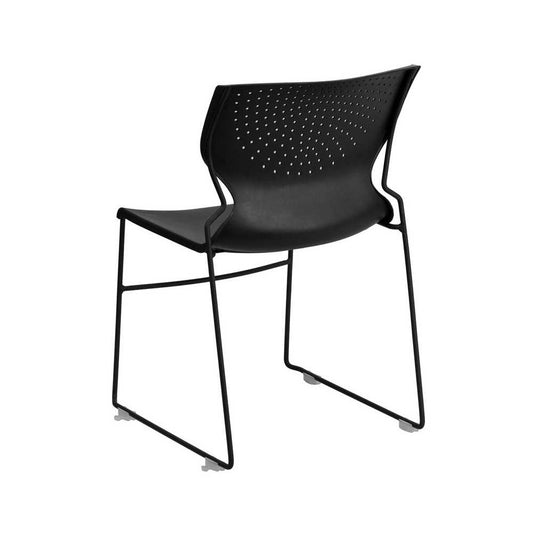 661 lb. Capacity Black Stack Chair with Air-Vent Back and Black Powder Coated Sled Base