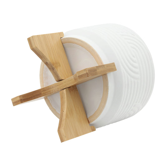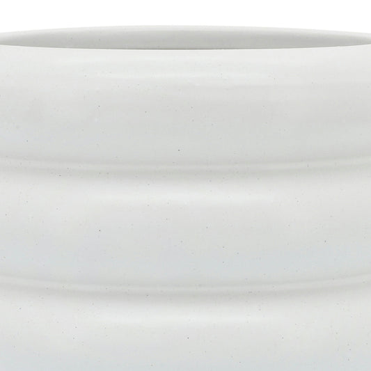 Cer, 7" Abstract Planter On Stand, White, Line Pattern