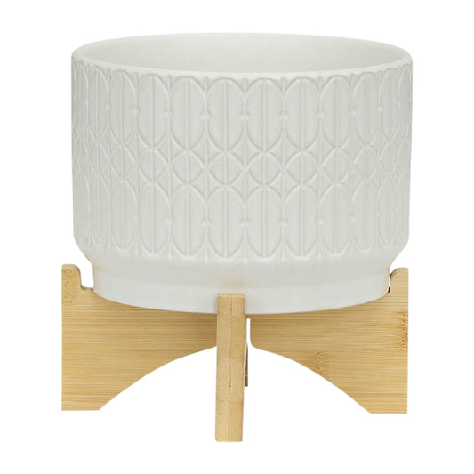 Cer, 8" Tribal Planter W/ Stand, Ivory