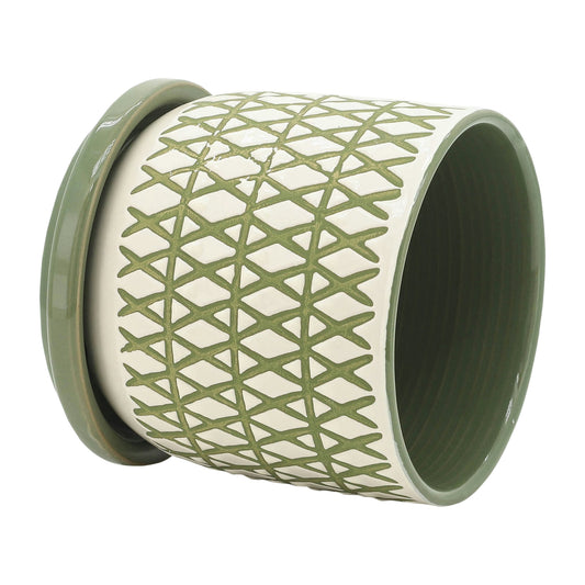 Sold outCer, 5" X-planter W/ Saucer, Olive