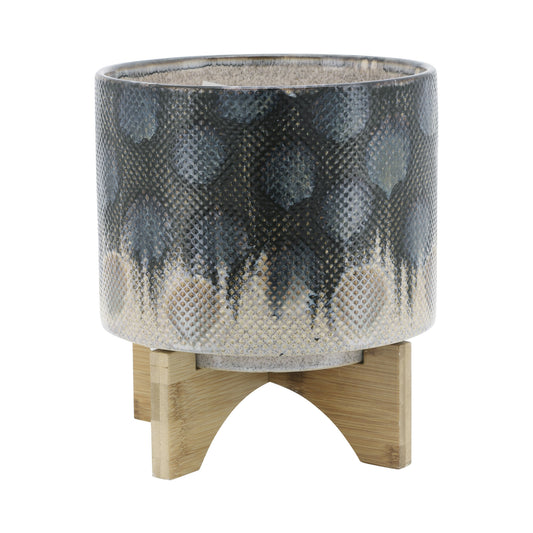 Cer, 8" Snakeskin Planter W/ Stand, Blue