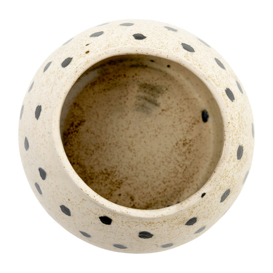 Sold outCer, 7", Round Dotted Pot, Wht/blk