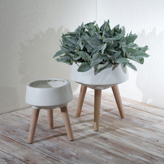 S/2 11/15" Terrazzo Planter W/ Wood Legs, White