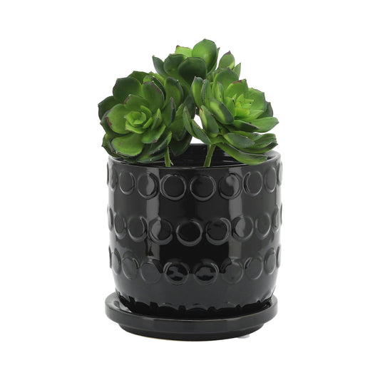 S/2 5/6" Dots Planter W/ Saucer, Black