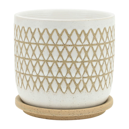 S/2 5/6" Aztec Planter W/ Saucer, Beige