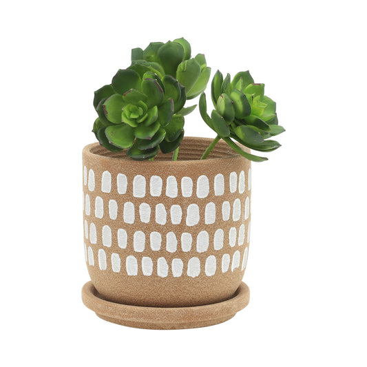 S/2 5/6" Dotted Planters W/ Saucer, Beige
