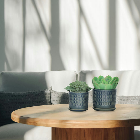 S/2 5/6" Dimpled Planters W/ Saucer, Blue