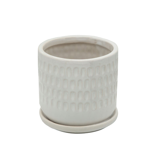 S/2 5/6" Dimpled Planters W/ Saucer, White