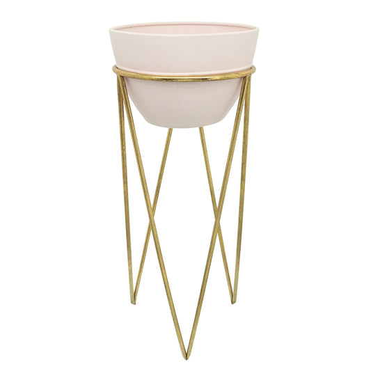 Sold outS/2 12/14" Metal Planter, Pink/gld