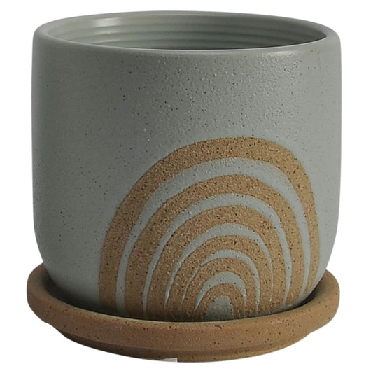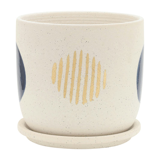 S/2 5/6" Circles Planter W/ Saucer, Beige