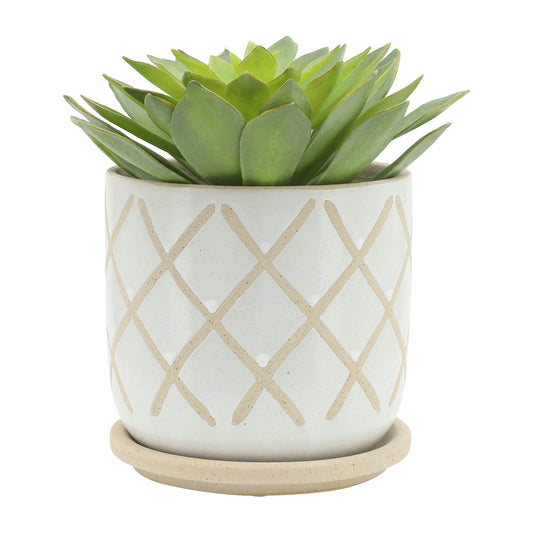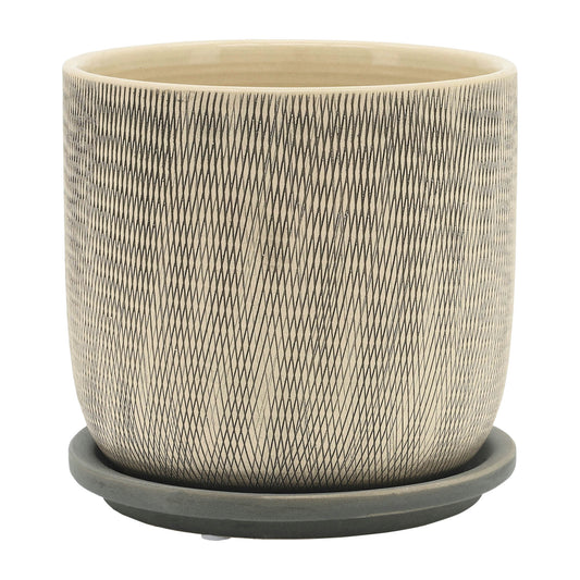 S/2 5/6" Criss/cross Planter W/ Saucer, Beige