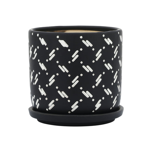 S/2 5/6" Aztec Planter W/ Saucer, Black