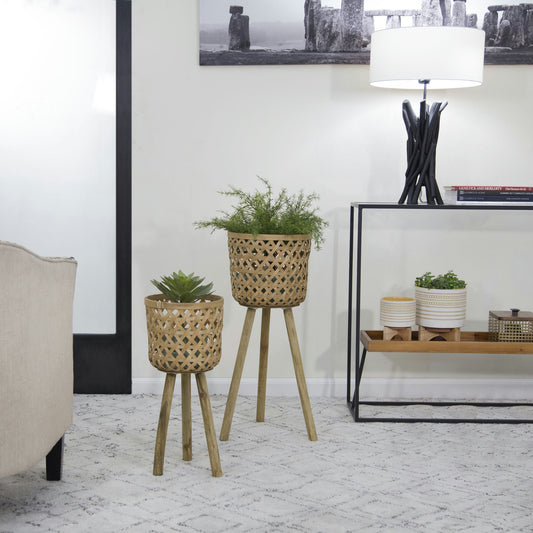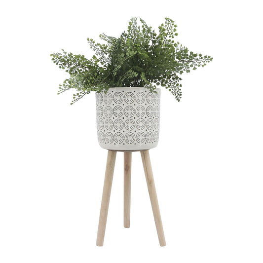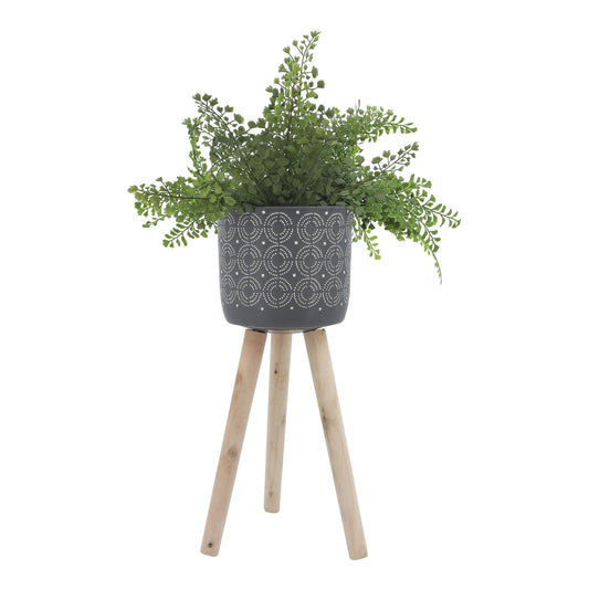 S/2 8/10" Aztec Planter W/ Wood Stand, Gray