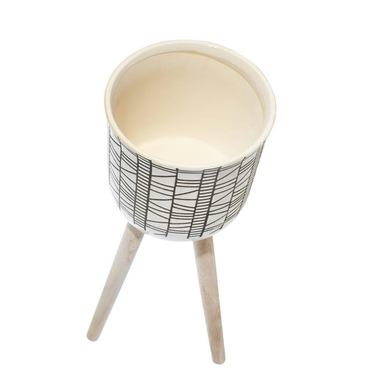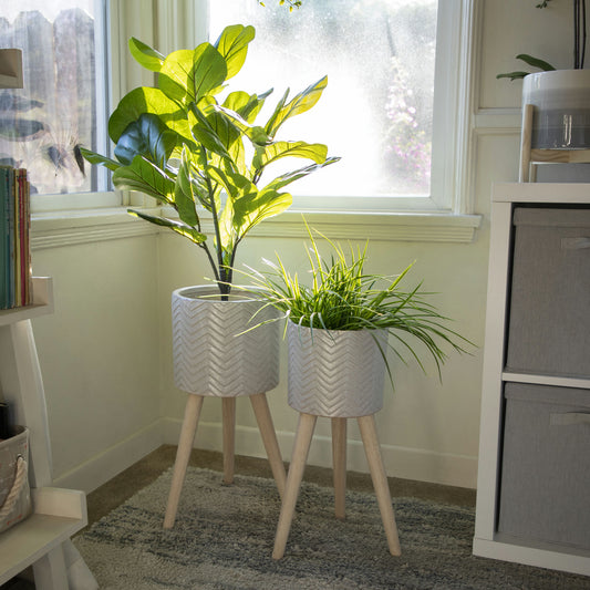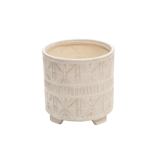 S/2 Ceramic, 8/10" Chevron Planter 3 Legs, Beige