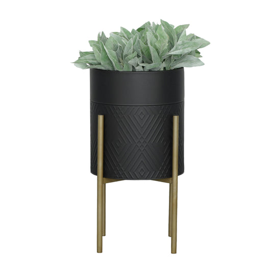 S/2 Diamond Planter On Metal Tand, Blk/gld