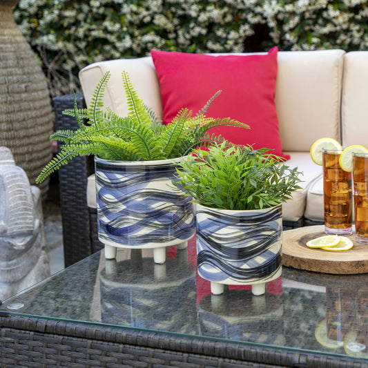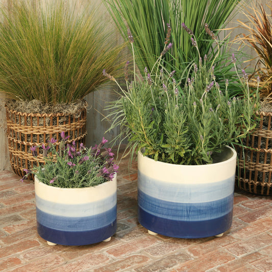 S/2 Ceramic Footed Planter 10/12", Blue Mix