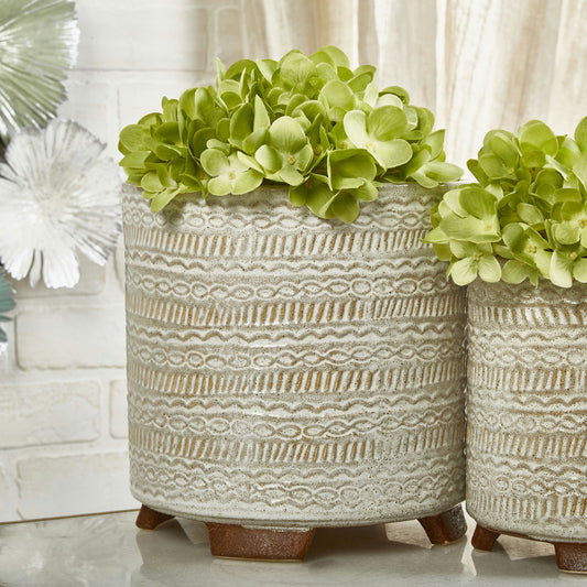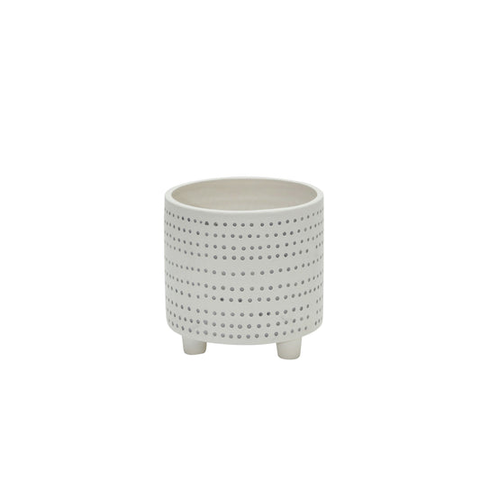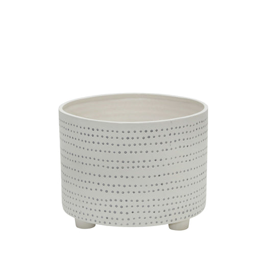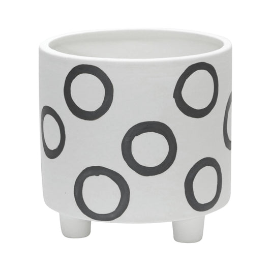 S/2 Footed Planter W/ Circles 6/8", Ivory