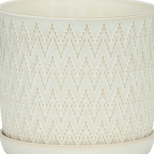 S/2 Chevron Planter 6/8" W/ Saucer, Beige