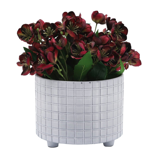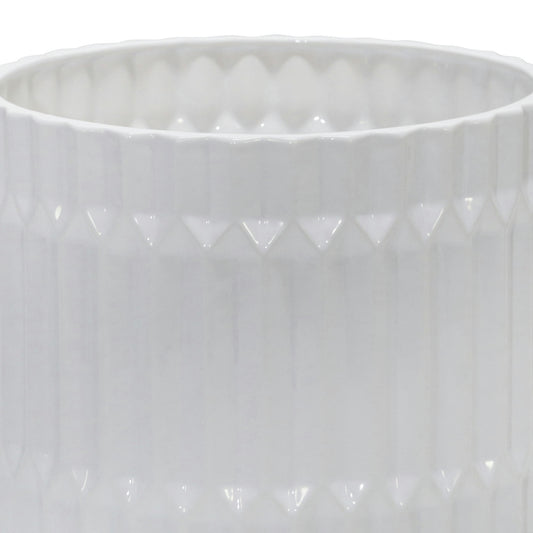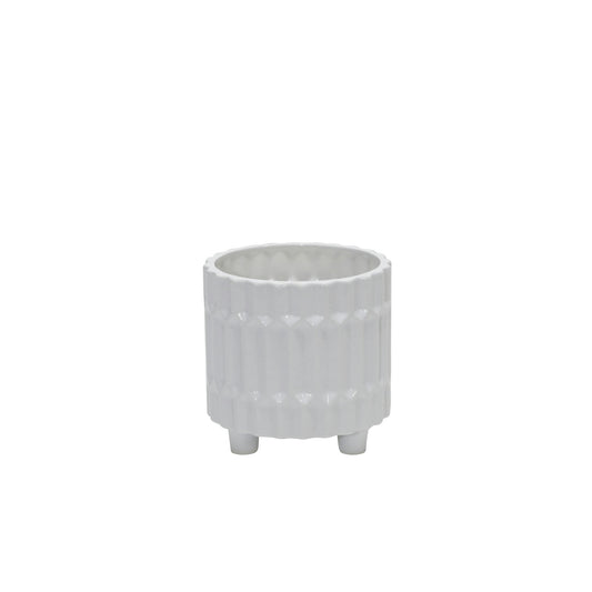 S/2 Ceramic Fluted Planter W/ Feet 6/8", White