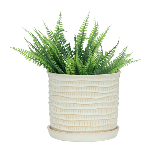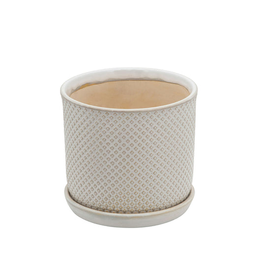 S/2 Textured Planter 6/8" W/ Saucer, Beige