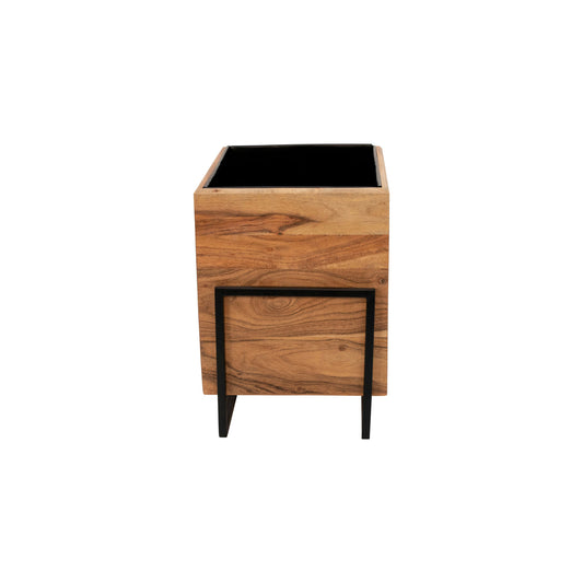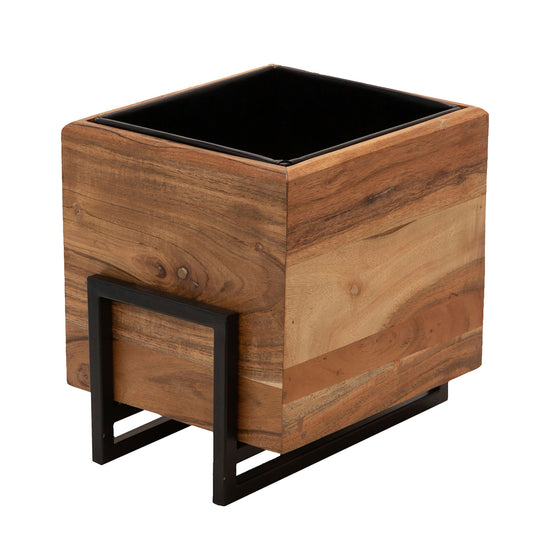 S/2 Wood/metal 7/10" Square Planters, Brown/black