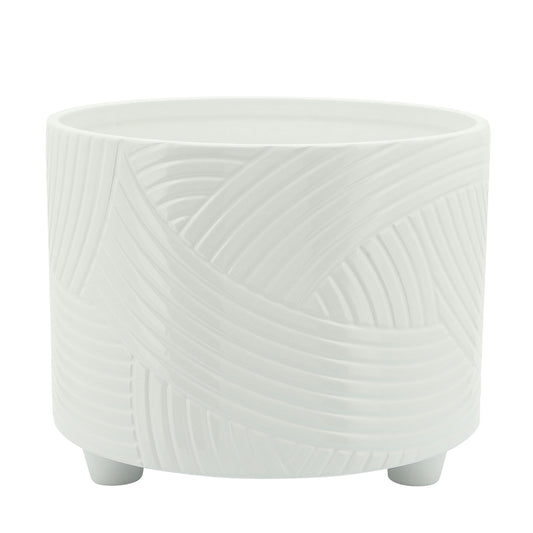 S/2 Tribal Look Footed Planter 6/8", Ivory