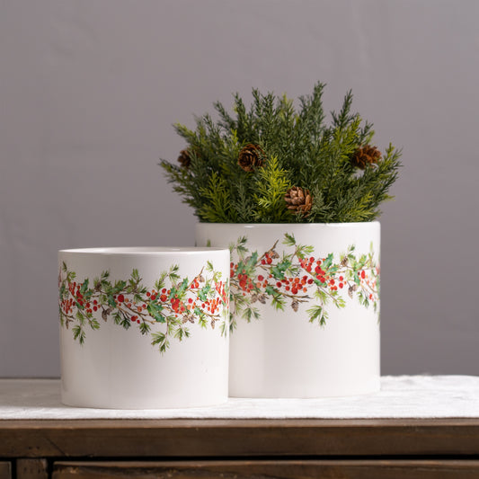 Pot (Set Of 2) 4.5"D x 5"H, 5.5"D x 6"H Ceramic, Lines